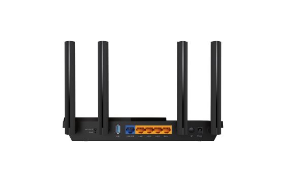 Router s dvoupásmovým připojením 2,4 GHz (574 Mbps) a 5 GHz (2 402 Mbps), WiFi 6, 4 Gigabit Ethernet LAN porty, kvalitní zabezpečení WPA3, Multi-SSID, rodičovská kontrola, Beamforming, kompatibilita s EasyMesh.