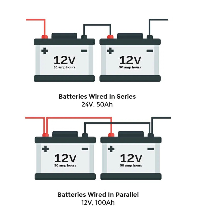 Propojovací kabely - 1x černý, 1x červený, zakončený očky na obou stranách je ideální k propojování baterií, měničů napětí, atd...se závitem M6. Propojením více baterií můžete zvýšit výstupní napětí (sériové zapojení) nebo celkovou kapacitu (paralelní zapojení).