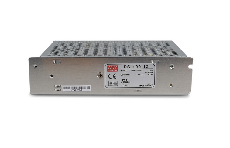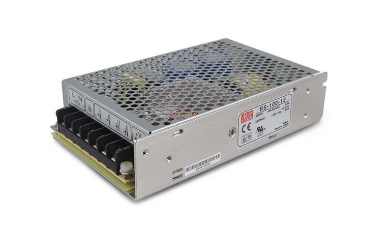 MEAN WELL RS-100-12 Spínaný zdroj uzavřený 100W 12V; Výstupní napětí: 12V; Regulace výstupního napětí: 11,4..13,2V; Výstupní proud: 8,5A; Skutečný výkon: 102W; Vstupní napětí AC: 88..264V; Odběr při 230V AC: 1,5A; Účinnost: 81%; Studený start: 40A;