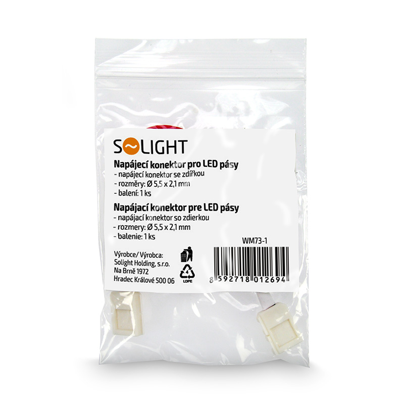 Solight propojovací kabel pro LED pásy, 8mm zacvakávací konektor na obou stranách, 1ks, sáček