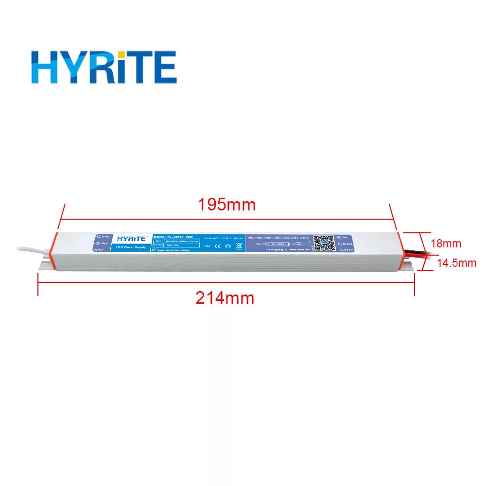 HYRITE napájecí zdroj Ultra Slim TL-12E20, 12V 1,67A 20W pro LED, IP20, výška 14,5mm