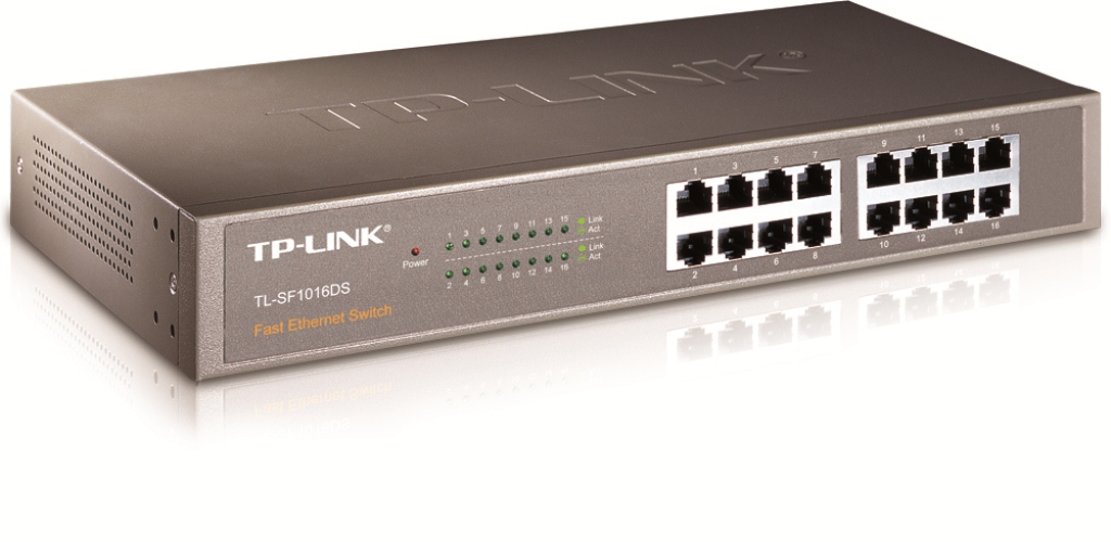 TP-LINK TL-SF1016DS je precizně zpracovaný switch TP-Link v kompaktním stolním designu vhodný pro montáž do 13" racku. Switch je vybavený 16 porty s rychlostí až 100 Mbps a indikačními LED diodami.