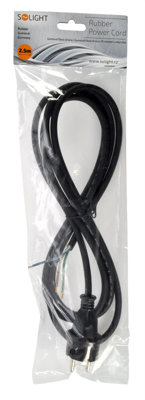Solight flexo šňůra, 3x 1mm2, gumová, černá, 2,5m