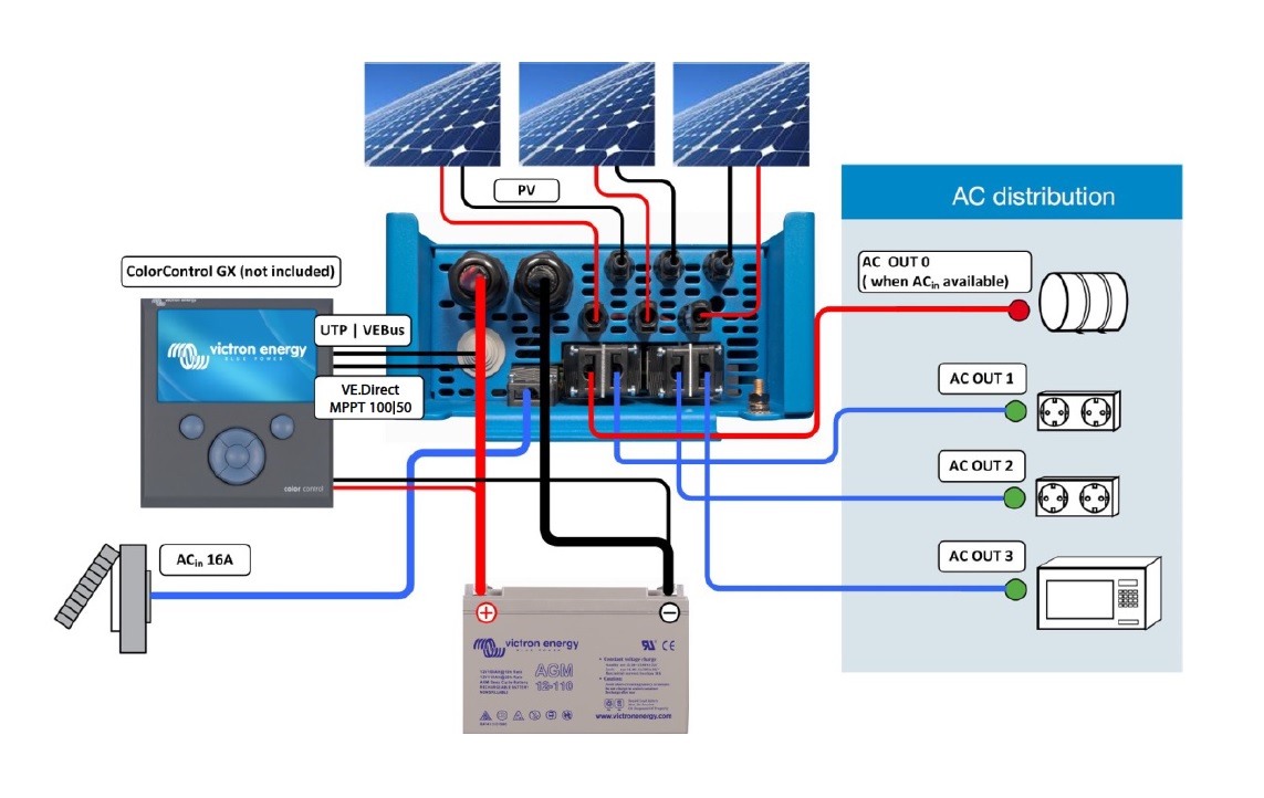 EasySolar pomáhá k vyšší míře energetické nezávislosti na rozvodné síti. Slučuje měnič/nabíječku, solární MPPT regulátor a rozvody střídavého AC proudu včetně jištění do jednoho kompaktního zařízení. Snadno se instaluje, je nenáročný na prostor a minimalizuje nutnou kabeláž. Sofistikovaně a automaticky upřednostňuje využívání vyrobené solární energie a minimalizuje odběry z rozvodné sítě. Je určen pro napájení 230 V AC jednofázových spotřebičů.