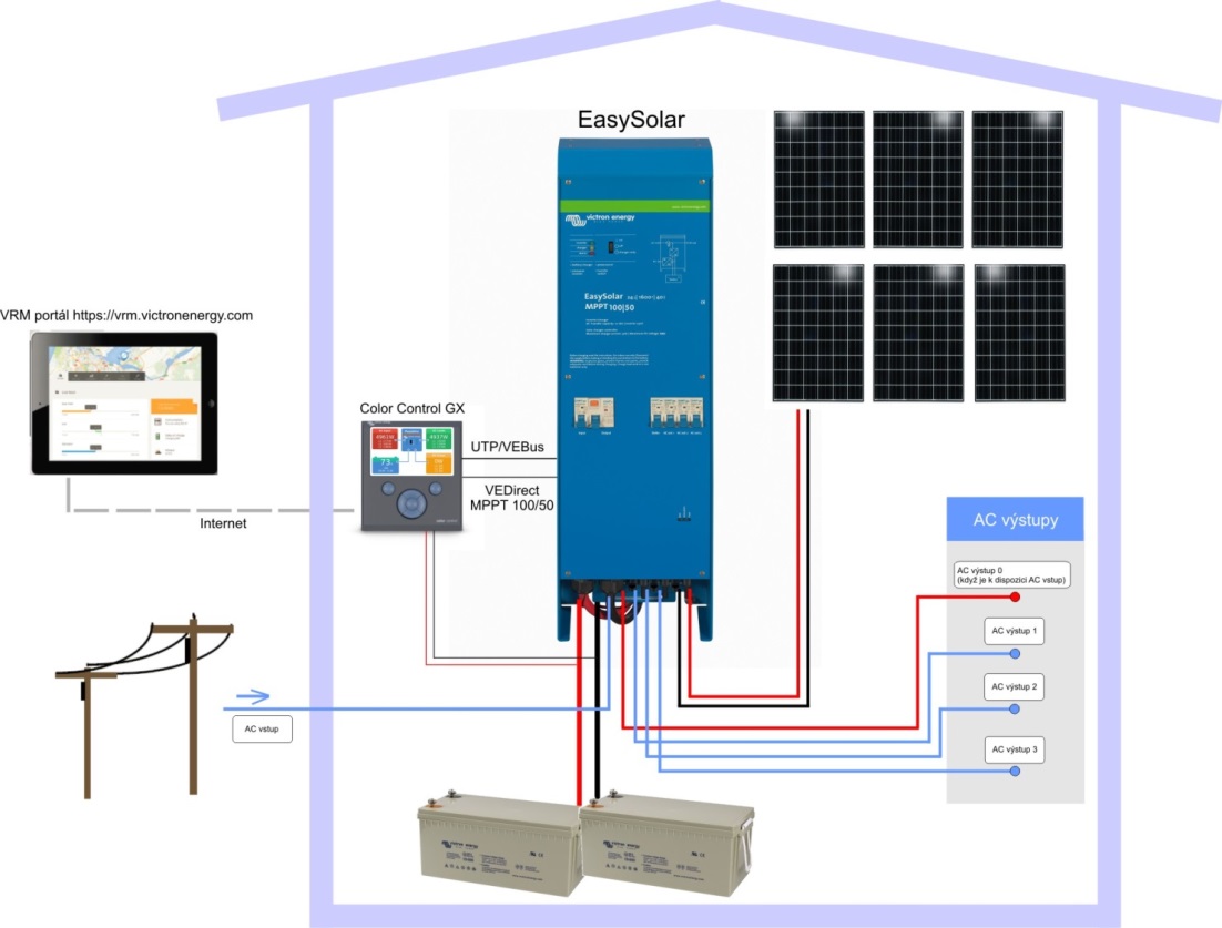 Komplexní multifunní řešení pro rodinné domy, rekreační objekty, chaty a podobně. Systém zvyšuje Vaší energetickou nezávislost vlastní vyrobenou elektřinou a napájí energií spotřebiče i v případě výpadků dodávek standardní rozvodné sítě (blackout).