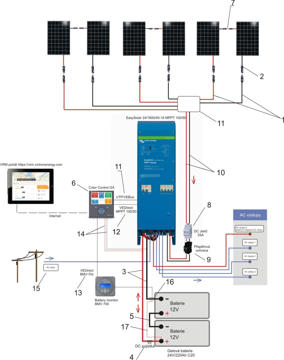 Po navýšení výkonové kapacity je možno více EasySolarů řadit paralelně.