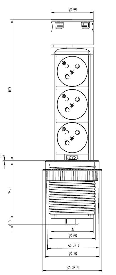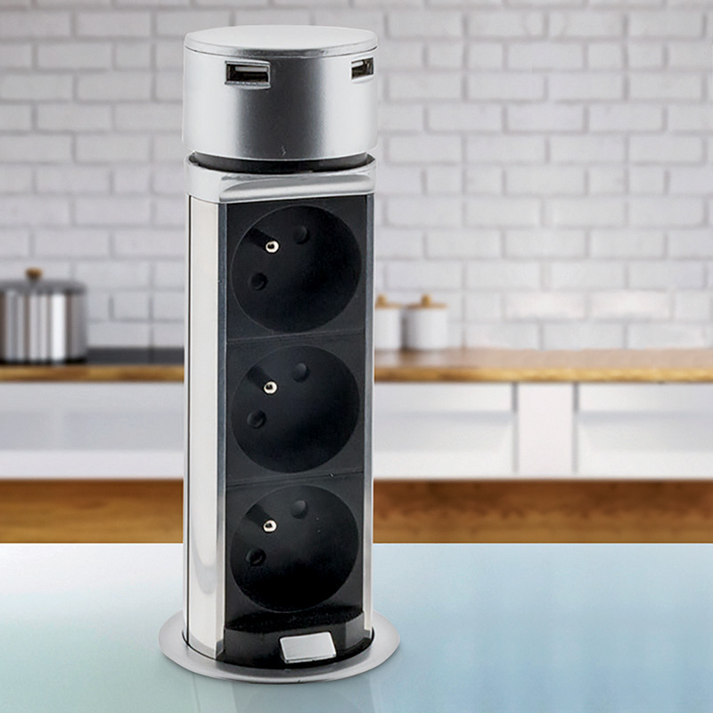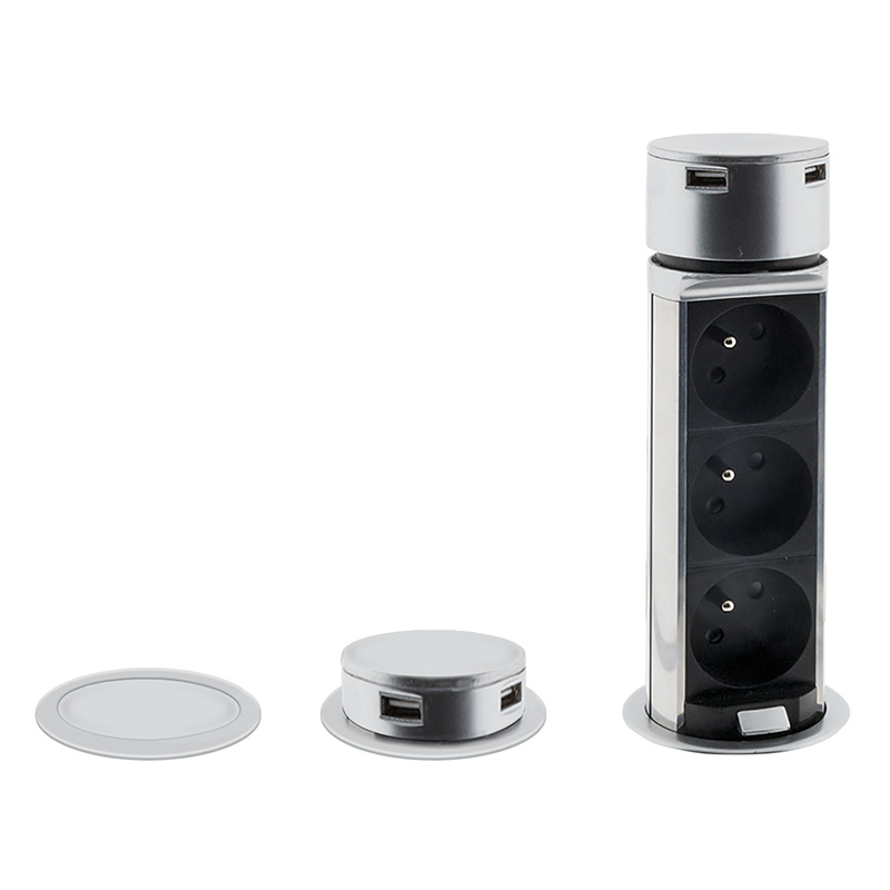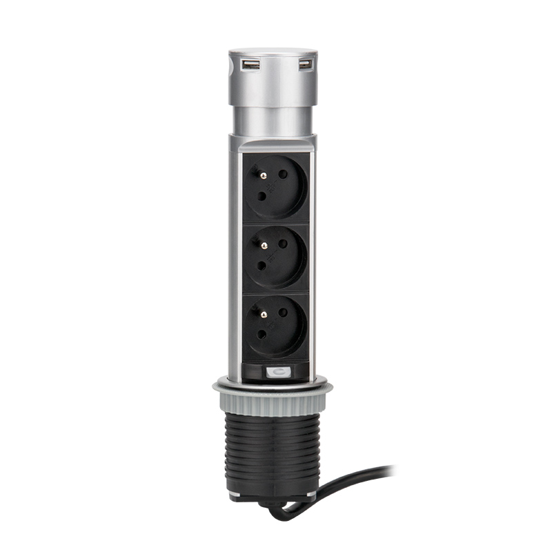 Vestavné zásuvky pro pracovní desky a stoly. Výsuvný blok, elegantně schovaný, vysune se pouze v případě potřeby a nezabírá zbytečně místo. Vlastnosti produktu: - dvě polohy vysunutí - pouze USB nebo všechny zásuvky; - 3x zásuvky 230V/10A, max. 2300W;