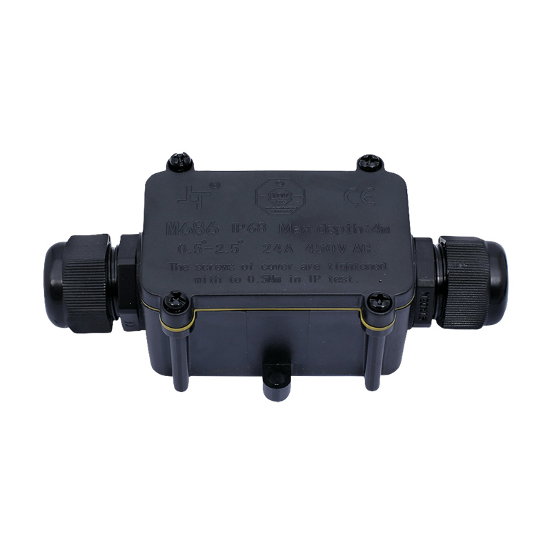 Vodotěsná propojovací krabička sloužící k propojení dvou a třížilových vodičů. Technické parametry: - počet kontaktů: 3; - počet vstupů: 1; - počet výstupů: 1; - maximální napětí: 450V AC; - maximální proud: 24A; - voděodolnost: IP68; - pro průměr