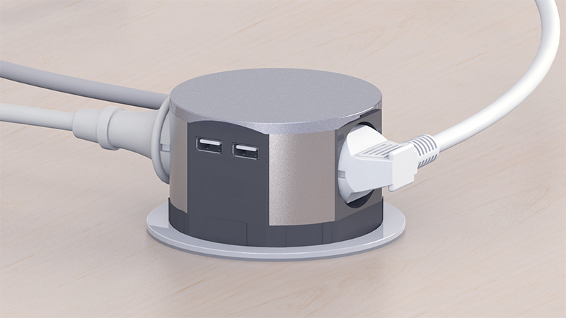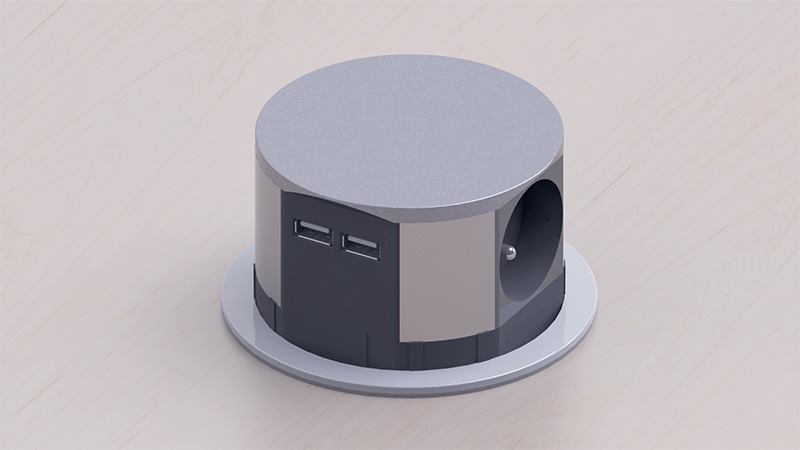Výsuvný blok zásuvek se třemi 230V zásuvkami a integrovanou USB nabíječkou nabízí praktické řešení pro připojení spotřebičů i nabíjení zařízení přímo na pracovní ploše. Kruhové provedení s vrchním krytem ve stříbrné barvě působí moderně a nenápadně zároveň. Díky výsuvnému mechanismu zůstává blok skrytý, dokud ho nepotřebujete.