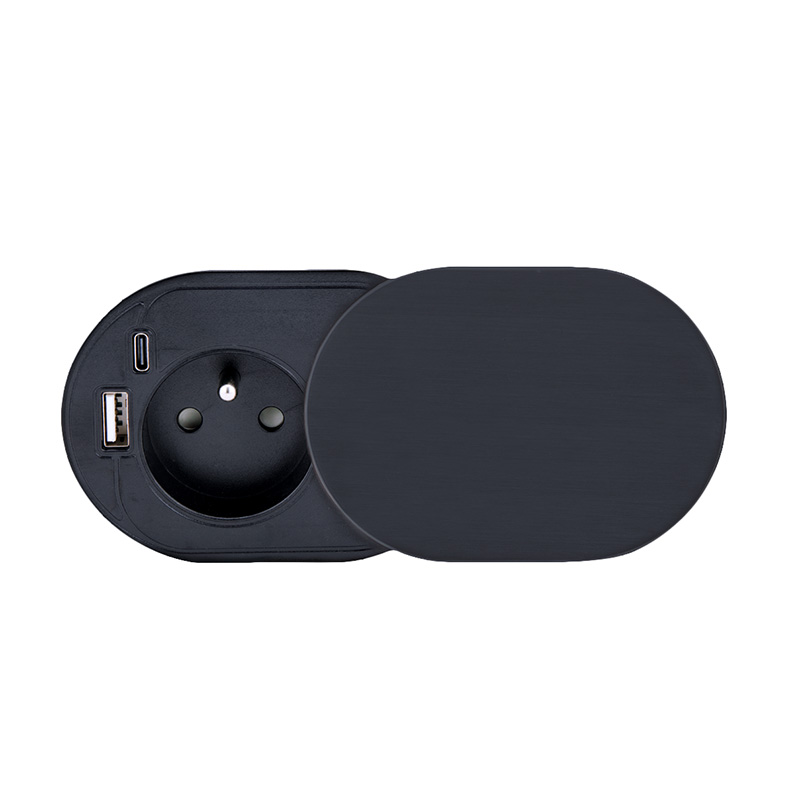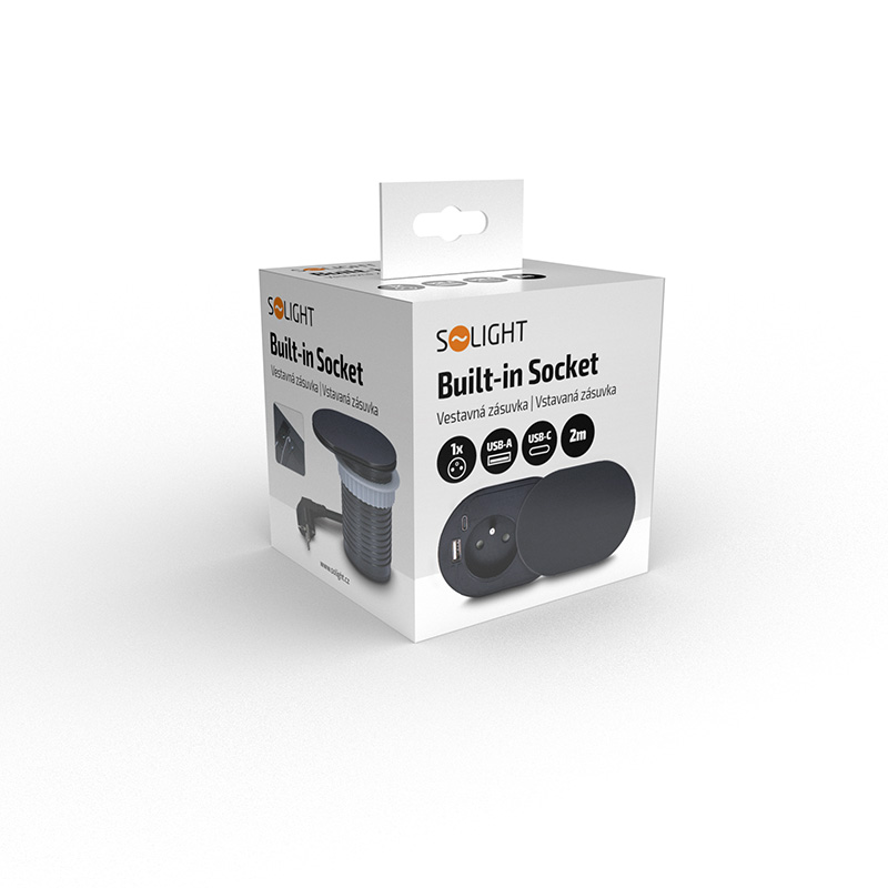 Solight PP124USBC-B vestavná zásuvka s posuvným víčkem, USB A+C nabíječka, 2m, matná černá