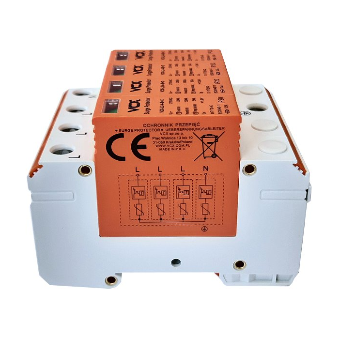 Modulární přepěťová ochrana VCX L2-1-B+C 7kA třídy T1 T2 je určená k ochraně napájecích instalací NN proti indukovaným a spínacím přepětím. Lze instalovat v sítích typu TN-S, TN-C a IT.
