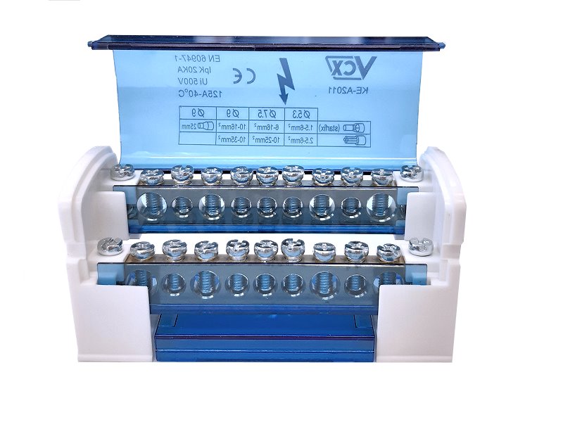 Modulární rozvodné bloky VCX jsou určeny k rozvodu proudových cest v nízkonapěťových skříních. Skládají se z připojovacích svorek, které jsou umístěny v plastovém krytu. Použití bloku eliminuje slabá místa v rozváděči, čímž se snižuje riziko zkratu.