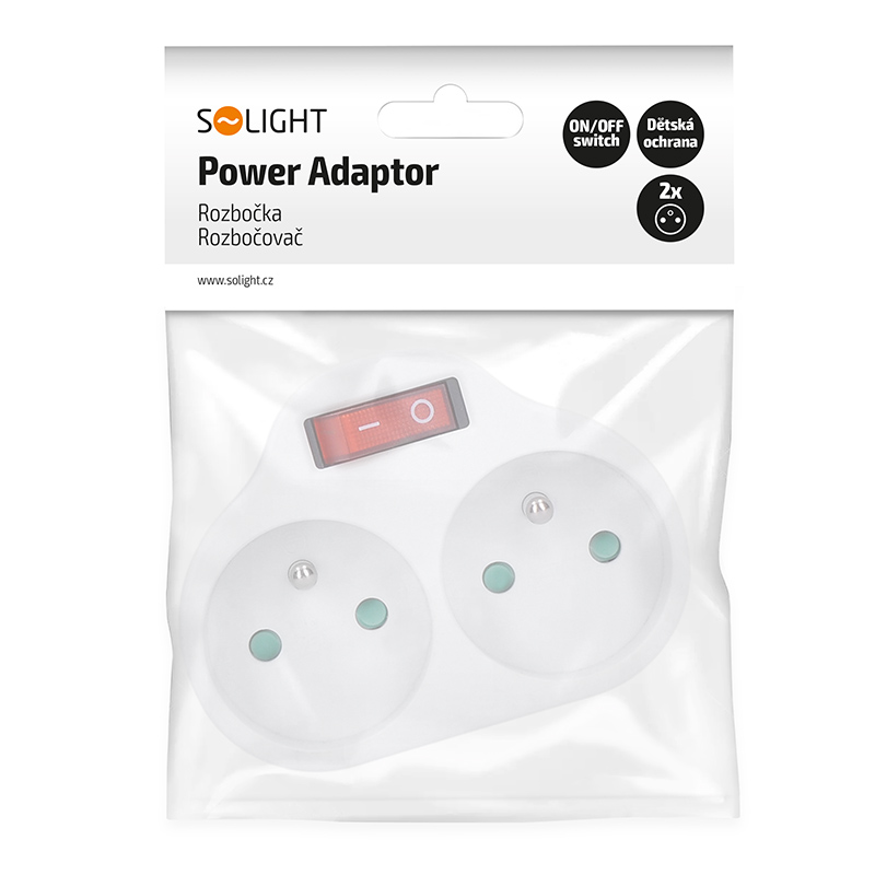 Solight rozbočka P97, 2x 10A, bílá, vypínač