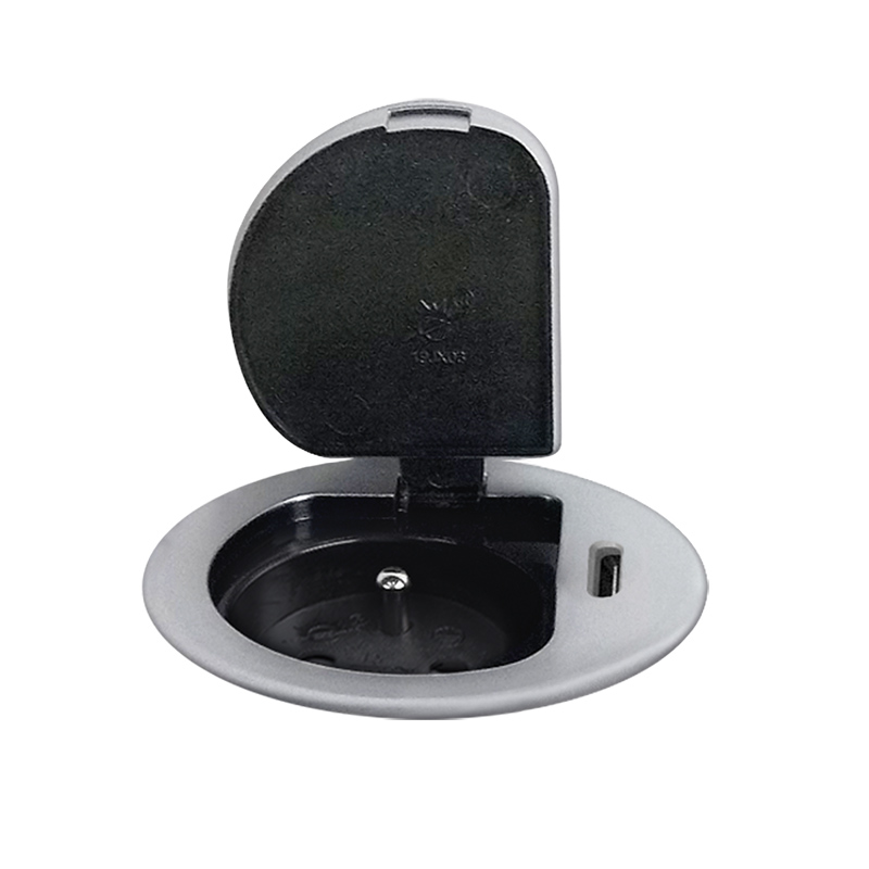 Zásuvka se instaluje do otvoru v pracovní desce a fixuje pomocí šroubovacího mechanismu. Nízký profil a stříbrné víčko umožňují snadné začlenění do moderního interiéru bez rušivých prvků. Po instalaci zůstává povrch čistý a přehledný, zásuvka je kdykoliv okamžitě k dispozici.