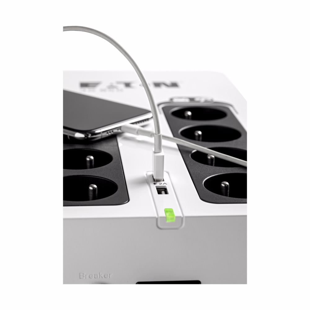 EATON UPS 3S 700 IEC, Off-line, Tower, 700VA/420W, výstup 8x IEC C13, USB, RJ11, 2x USB nabíjení (2A max), bez vent.