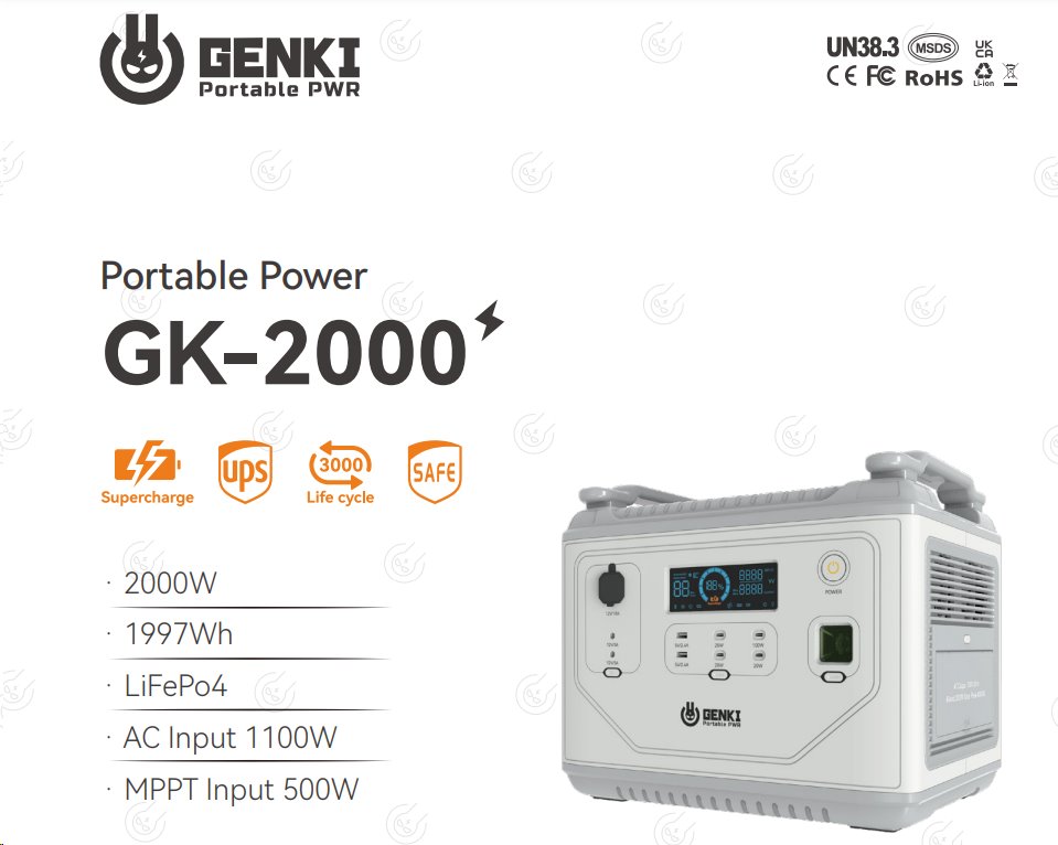 Genki Camper GK-2000 Home back, přenosná nabíjecí stanice, 2000W