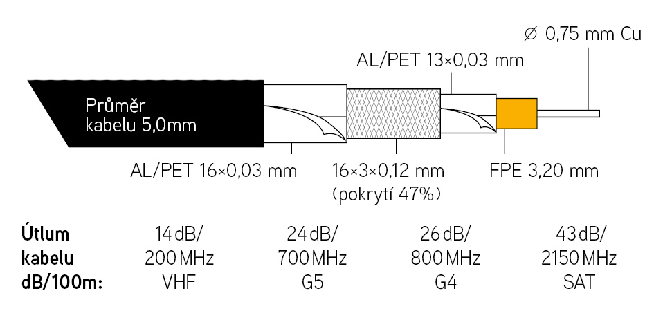 Kabel KOAX KH-4U/48FTS na cívce 305m, PE černý 5,0mm