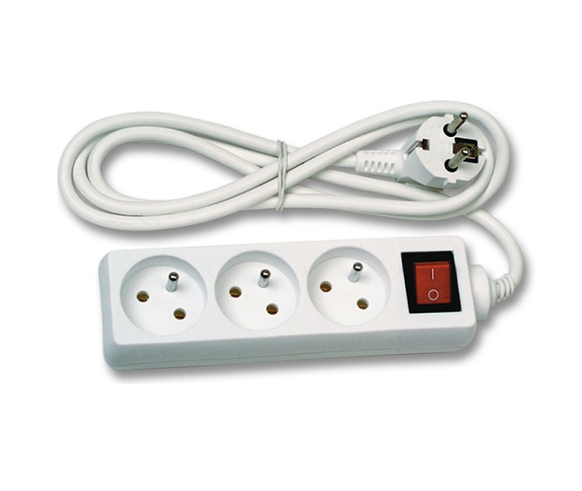 Praktický prodlužovací kabel se 3 zásuvkami. Na kabelu naleznete také centrální vypínač pro snadné a rychlé odpojení spotřebičů od elektrické sítě.