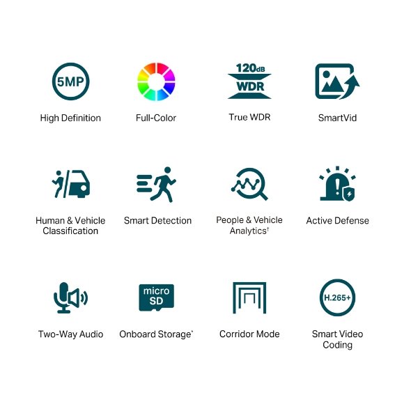 Vyzkoušejte všechny výhody technologie VIGI SmartVid. Vylepšíte si kvalitu i zpracování nahrávaných videí. Chytrý infračervený přísvit Smart IR zabrání podexponování objektů ve tmě nebo naopak jejich přesvícení. Dopřejete si pohled na detaily a prohlédnete si příchozí návštěvníky. O věrné vykreslení obrazu se postará funkce True WDR, která minimalizuje efekty stínů a upravuje kontrast osvětlení. 3D DNR vám zajistí jasnější video bez zkreslení.