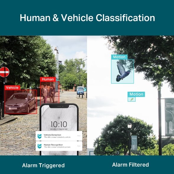 Kamera TP-Link VIGI, vybavená integrovanými AI čipy, monitoruje své okolí. Díky pokročilým algoritmům dokáže rozlišit lidi a vozidla od ostatních objektů. Pokud chcete dostávat oznámení jen v některých případech, spustíte pouze detekci lidí či vozidel (nebo detekci vozidel i lidí). Kamera nebude reagovat na padající listí a na poletující ptáky. Velkou výhodou je také funkce automatického sledování osob či vozidel, o které se zajímáte.