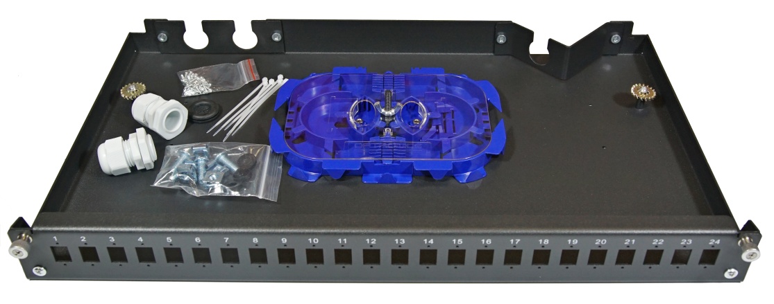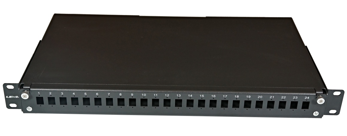 - čelo 24 číslovaných pozic pro 24x SC (24x LC Duplex, 24x E2000)