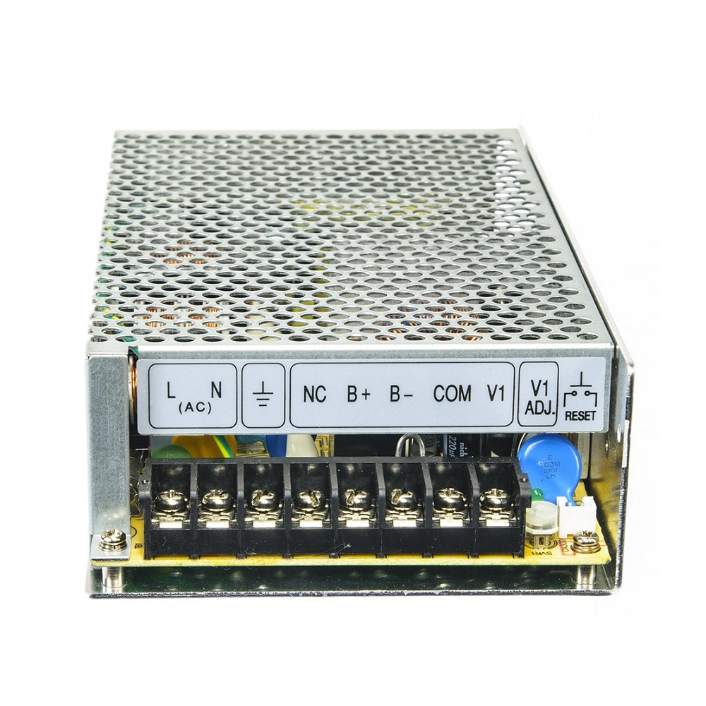 Profesionální spínaný napájecí zdroj Mean Well se zálohovací funkcí s nastavitelným výstupním napětím 48-58V a výstupním proudem až 2,7A pro aktivní prvky s odpovídajícím napájecím rozsahem.