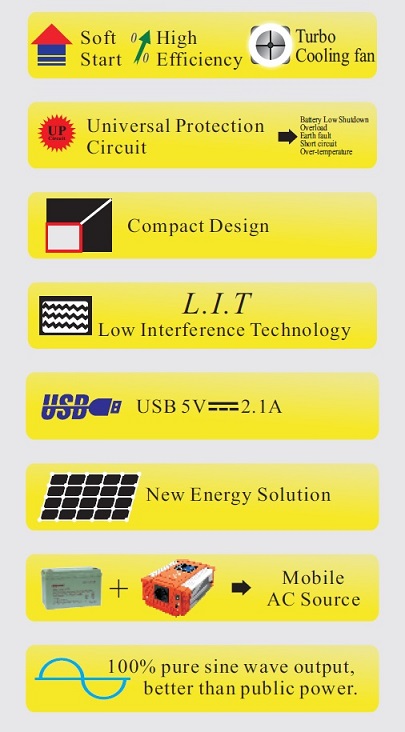 - Čisté sinusové výstupní napětí: čistý výkon pro citlivé zátěže.