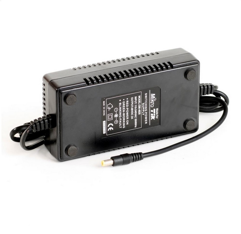 MikroTik OEM napájecí adaptér se standardním 5.5 / 2.1mm konektorem určeným pro napájení například MikroTik zařízení nebo kamer se vstupním napětím 48V DC. Napájecí adaptér má maximální výkon 96W a max. výstupní proud je 2A. Ke zdroji je fixně přidělán 2