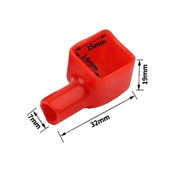 Ochranná krytka na svorku baterie červená, velikost 16x16x14mm