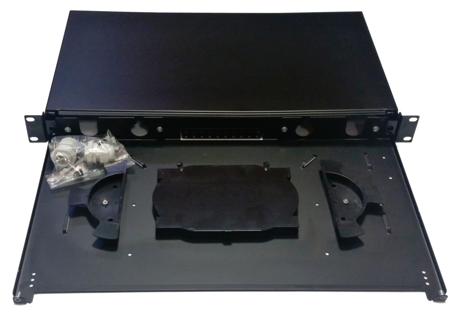 Optická vana 19" 1U bez čela, bavená kazetou pro 24 vl. výsuvná