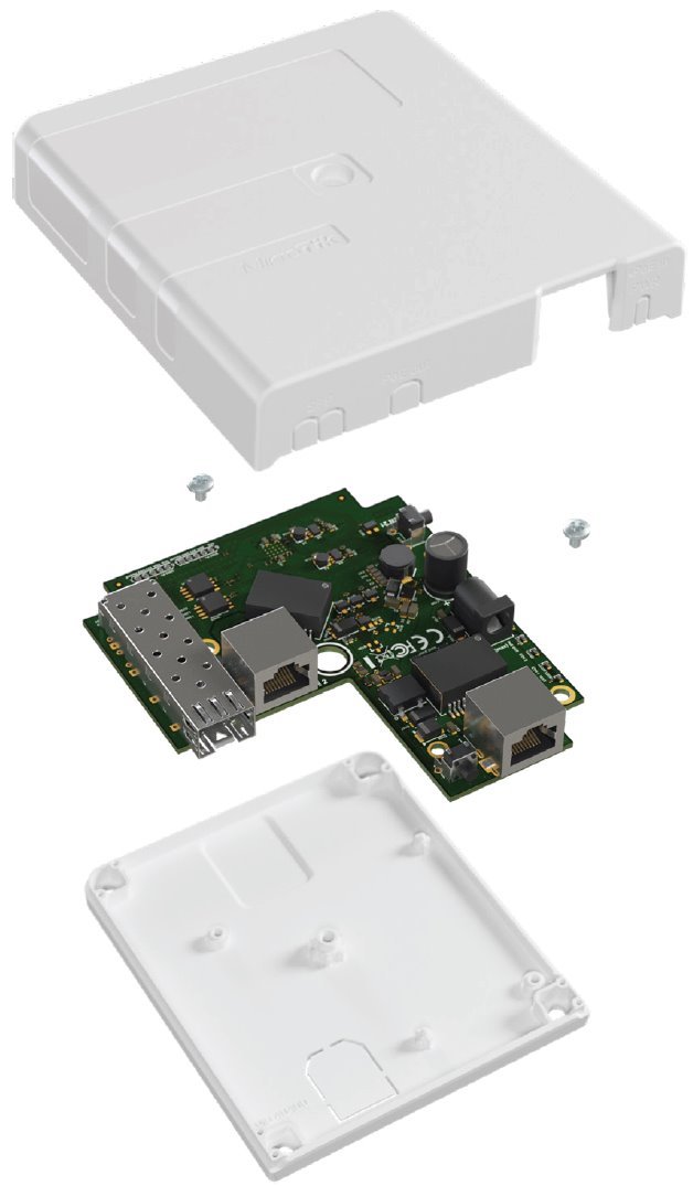 Nástěnný PoE injektor se SwOS managementem, jedním SFP portem, dvěma Gigabitovými porty, z čehož jeden poskytuje pasivní PoE a napájecím DC konektorem se vstupním napětím 12 až 57 V DC.
