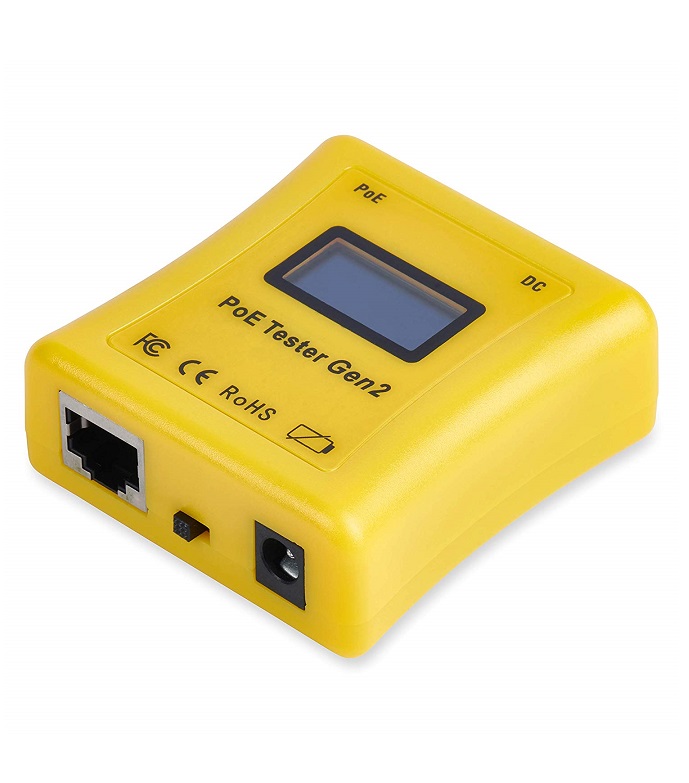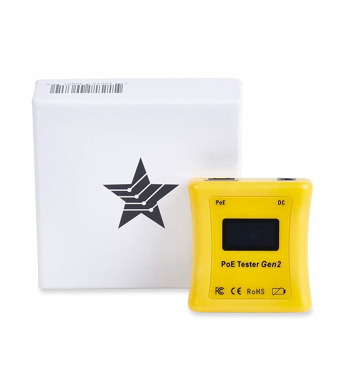 Umožňuje měření hodnot napětí, proudu, napájených párů, detekci aktivního 802.3af/802.3at standardu, nového IEE 802.3bt PoE standardu, pasivního PoE, testování napájecích adaptérů (7-56V).