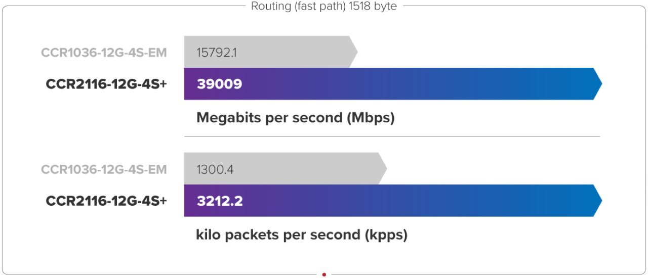 Předinstalován je operační systém RouterOS v7 level 6, v kterém se nabídne 128MB vnitřní úložiště a 16 GB DDR4 RAM. Maximální spotřeba zařízení se drží na přijatelných 72 W s připojenými periferiemi. Díky novému RouterOS v7 má router až 6x vyšší výkon při načítání BGP.