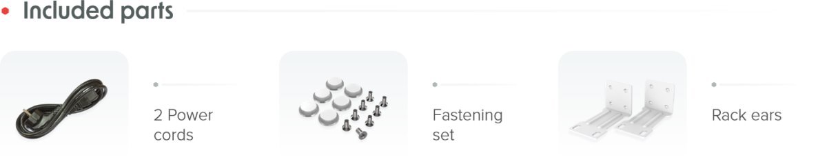 Mikrotik je vybavený ethernetovým portem, který umožňuje napájení pomocí pasivního PoE, a konzolovým RJ45 portem. Můžete ho také napájet přes 2 redundantní Hot-swap zdroje, přes DC konektor (36 - 57V DC) nebo skrz ethernetový port s pasivním PoE napětím 43 - 57V DC.