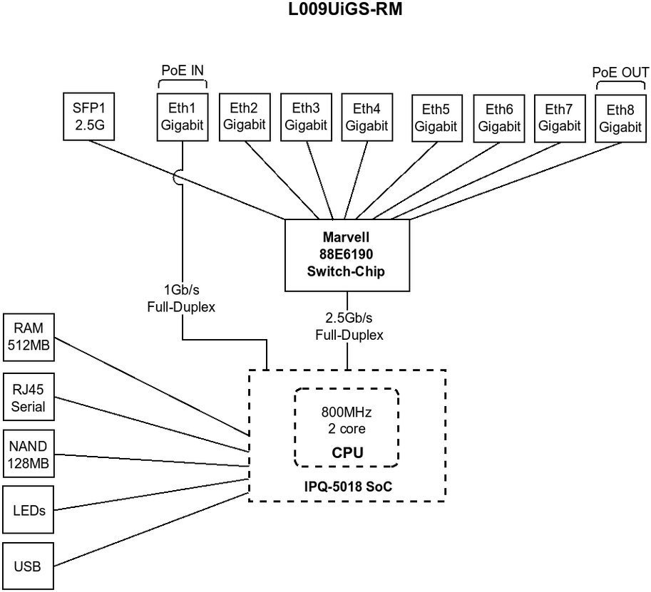 RouterBoard s výkonným 2jádrovým procesorem IPQ-5018. Podpora WiFi 6 v 2.4 GHz spektru. Bezdrátový čip Gen6 AX. RAM 512 MB, úložiště 128 MB. Pasivní chlazení bez ventilátorů. Možnost instalace do 19" racku.