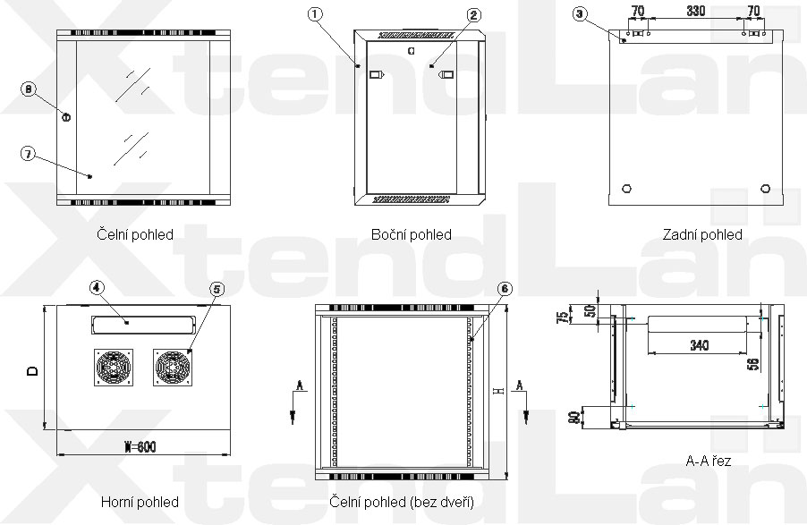 • Rozvaděč nástěnný 6U 600x600 - ČERNÝ