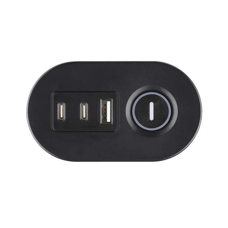 - zásuvky 230V schované pod stolem, USB nabíječka a centrální vypínač přístupné shora