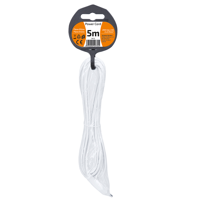 Solight flexo šňůra, 2x 0,75mm2, bílá, plochá, 5m Vlastnosti produktu: - průřez vodičů: 2 x 0,75mm2 - typ kabelu: H03VV-F2 - plochá vidlice - barva: bílá - délka: 5m Technické parametry: Barva Bílá Počet zásuvek 0 Vypínač Ne USB nabíjení Ne