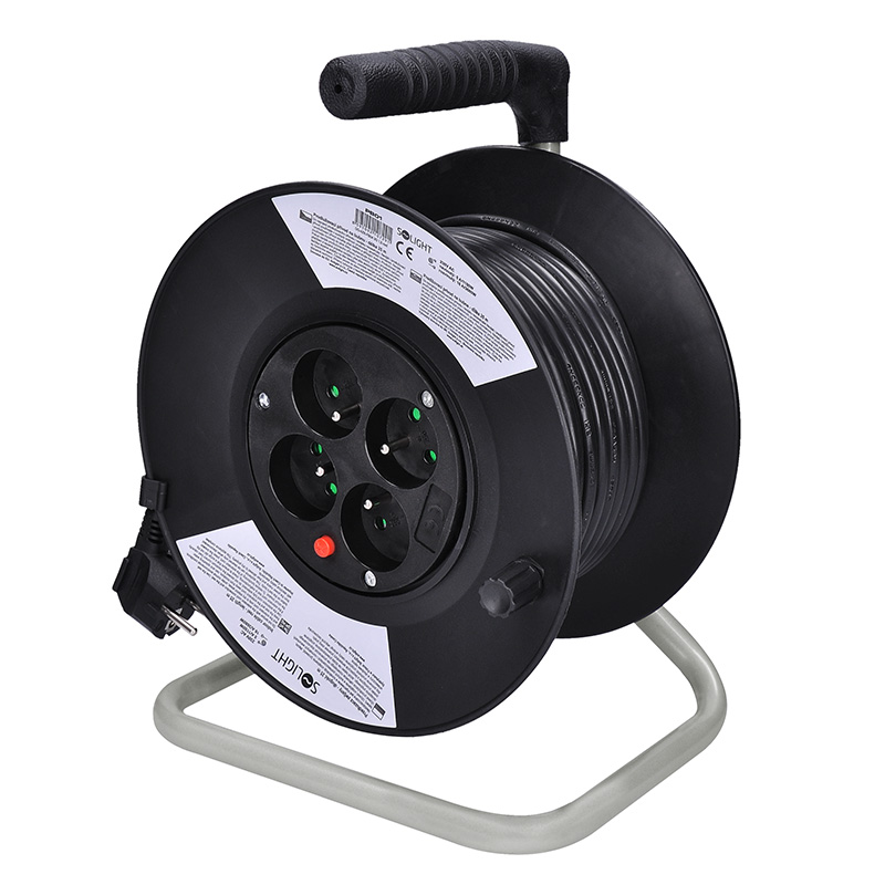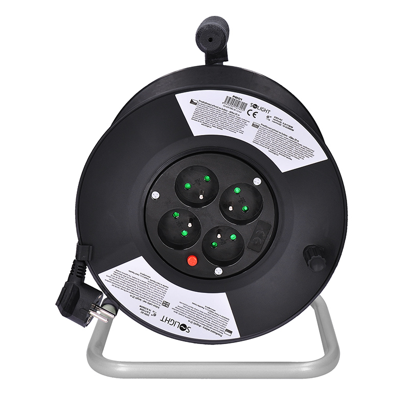 Solight PB01 prodlužovací přívod na bubnu, 4 zásuvky, 25m, černý kabel, 3x 1,5mm2
