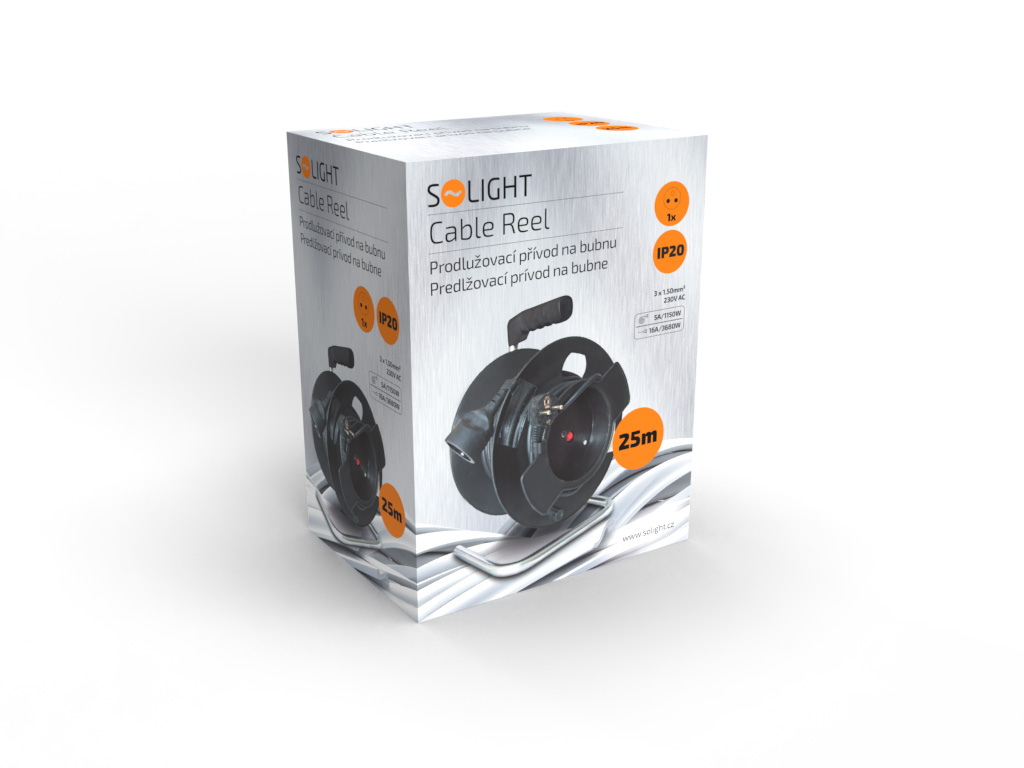 • Solight PB11 prodlužovací přívod na bubnu, 1 zásuvka, 25m, černý kabel, 3x 1,5mm2