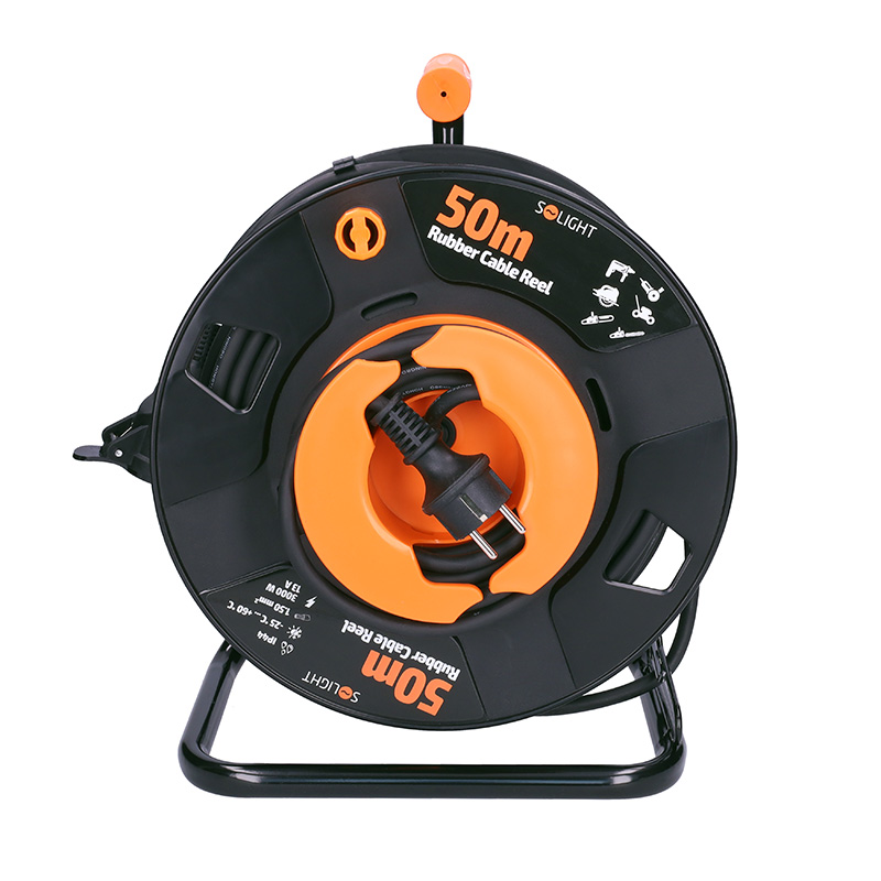 • Solight PB31 prodlužovací přívod na bubnu, 1 zásuvka, venkovní, 50m gumový kabel, 3x 1,5mm2, IP44