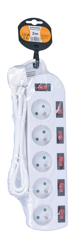 Praktický prodlužovací kabel se 5 zásuvkami s ndividuálním vypínačem pro každou zásuvku. Naleznete zde také centrální vypínač pro snadné a rychlé odpojení spotřebičů od elektrické sítě.