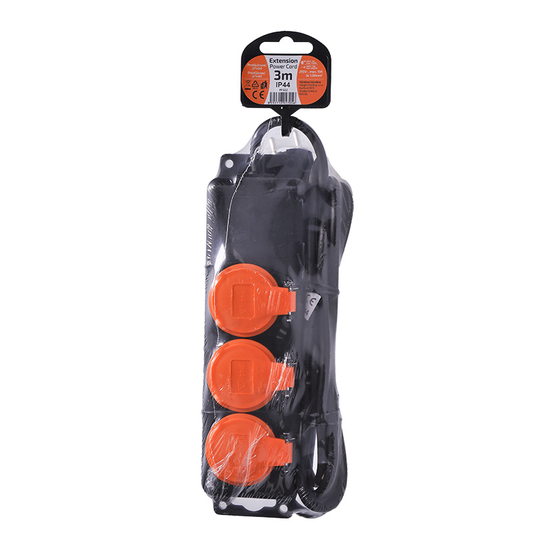 Solight prodlužovací přívod IP44, 3 zásuvky, gumový kabel, venkovní, 5m