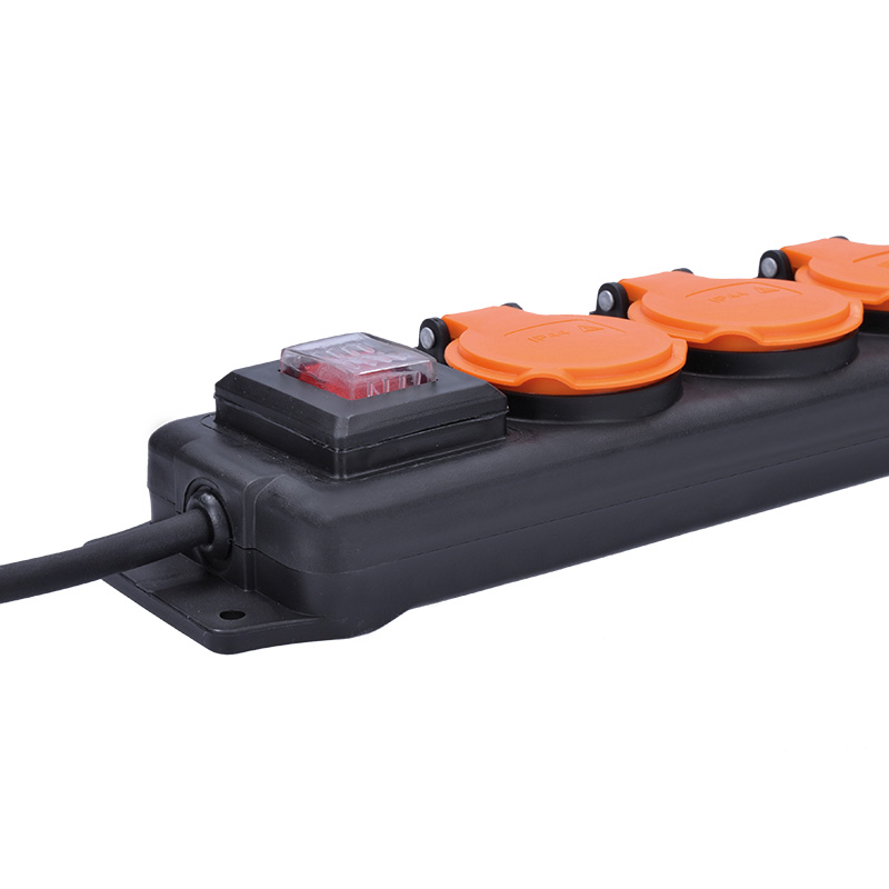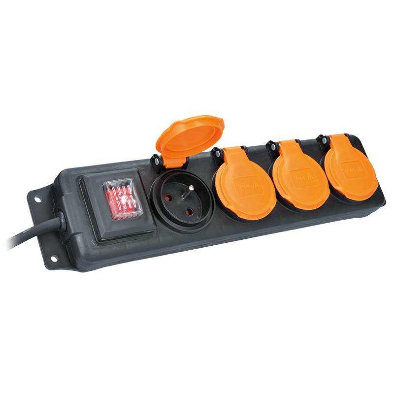 Solight prodlužovací přívod IP44, 4 zásuvky, gumový kabel, vypínač, venkovní, 5m