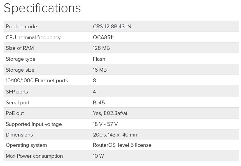 • Switch Mikrotik CRS112-8P-4S-IN with QCA8511 128MB, 8xGLAN w PoE-out, 4xSFP, ROS L5, desktop case, PSU