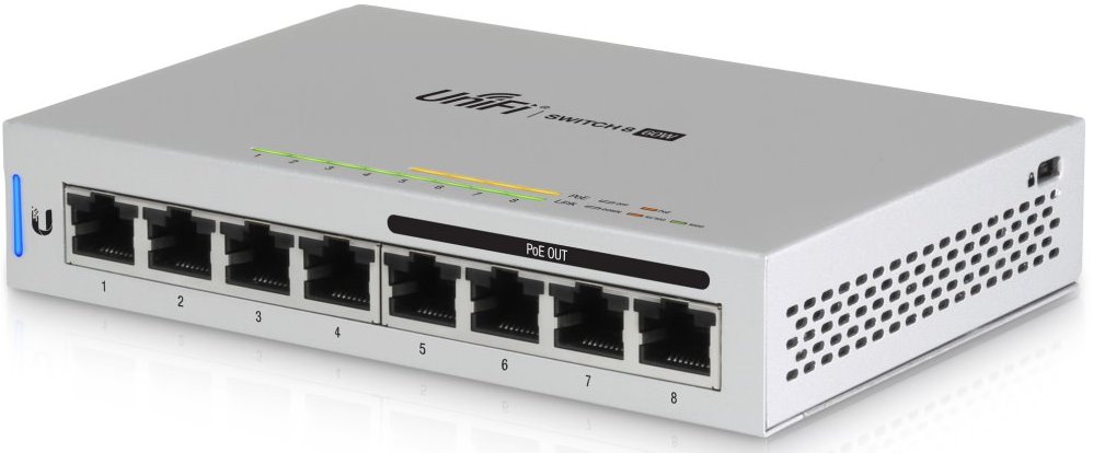 US-8-60 W je Gigabitový PoE switch od Ubiquiti Networks v desktop provedení s maximálním výkonem PoE napájení 60 W. Switch s 8 gigabit metalickými porty poskytuje celkovou propustnost 16 Gbps. Jeho největší předností je gigabitový POE IN na portu č.1 a výstupní POE Out na portu č.8. Switch lze napájet jak aktivně (802.3af/at), tak pasivně (24V i 48V). Switch umí napájet další zařízení na portu č.8 s maximální spotřebou 12 W se stejným napájením jakým je napájený switch.