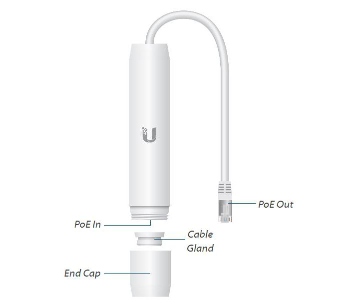 Venkovní PoE konvertor pro napájení většiny RouterBOARDů nebo zařízení od Ubiquiti s gigabitovým portem. Jedná se o převodník z aktivního napájení označeného jako 802.3af na pasivní PoE 24V/0,5A s maximální zátěží 12W.