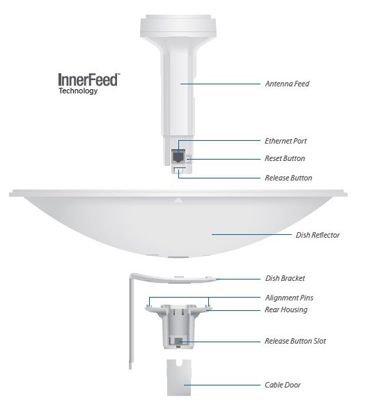 InnerFeed™ technologie integruje rádiovou část do zářiče od antény čímž odpadá potenciální ztráta na RF kabelu.