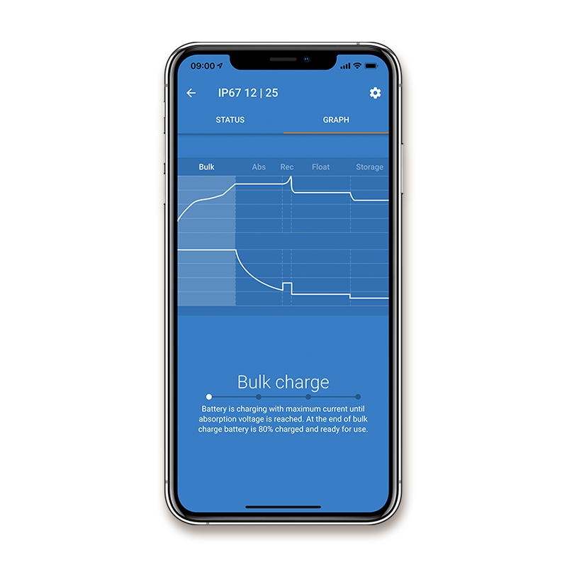 Victron Energy Nabíječka baterií BlueSmart 12V/17A IP67, vodotěsná. Automatické 5-fázové nabíjení. Nabíječka je vybavena mikroprocesorem řízeným "adaptivním" nabíjením baterií. Funkce "adaptivní" - automaticky optimalizuje nabíjecí proces v závislosti na způsobu používání baterie. Nabíječka je vhodná i pro nabíjení LiFePO4 baterií.