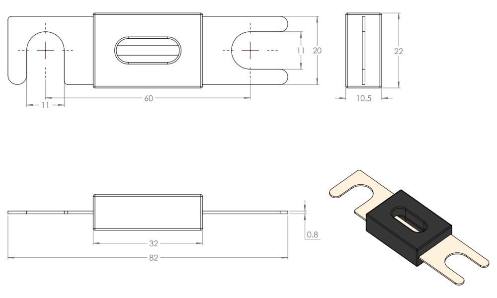 Pojistka ANL-fuse Victron Energy 300 A (80 V) určená pro 48 V zařízení.